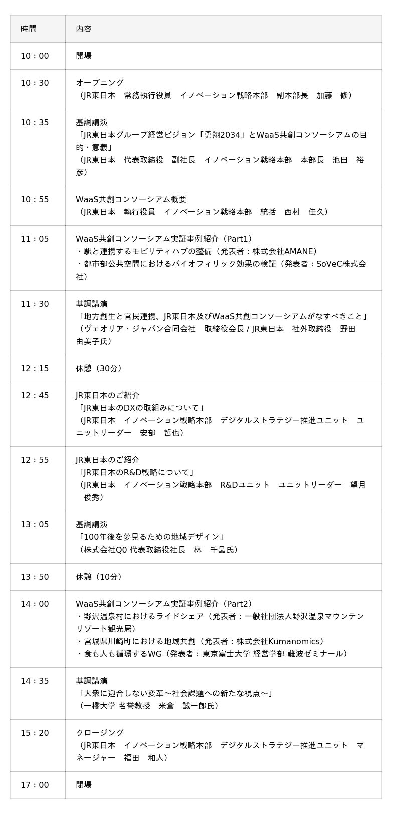 ・ 「地方創生と官民連携、JR東日本及びWaaS共創コンソーシアムがなすべきこと」