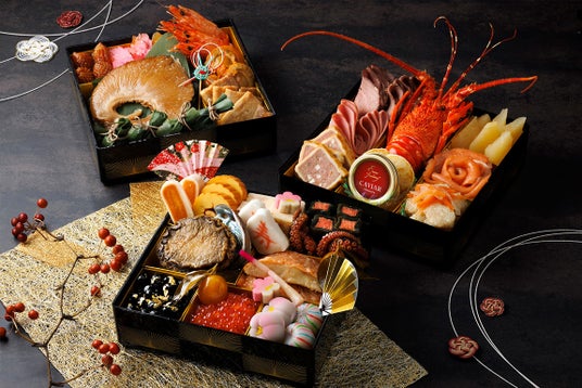 新しい年の始まりに、たくさんの思いや願いを込め、西洋料理・日本料理・中国料理、それぞれの華やかさを盛り込んだおせち料理。ホテル日航成田では、中国料理の代表的な高級食材「フカヒレ姿煮」が入った『和洋中おせち 参段祝い重』と、伝統的な和風重と彩り豊かな洋風重からなる『和洋おせち 弐段祝い重』の2種類をご用意しました。ホテル日航成田ならではの趣向を凝らしたおせち料理をお楽しみください。