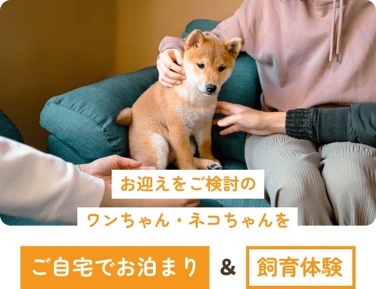 トライアルホームステイ制度は、お迎えを検討しているペットとご自宅で過ごしていただき、飼育への不安、先住ペットとの相性、お客様ご自身のアレルギー発症リスクといったご不安をお迎え前に解消いただくためのサポート制度です。