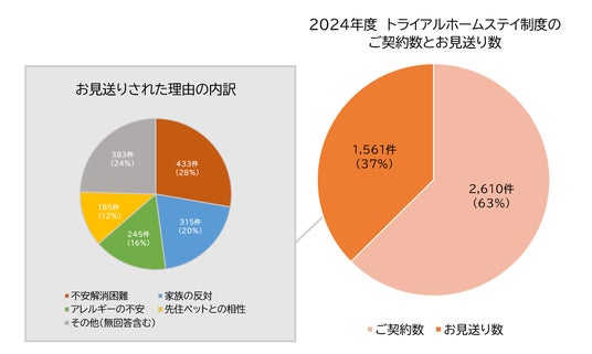 2024年度(集計期間:2024年4月~2025年3月)には、トライアルホームステイが4,171件実施され、うち1,561件(37%)は購入を見送られました。