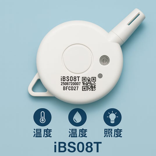 「iBS08T」は、iBSシリーズで初めて複数のセンサー(温湿度・照度)を搭載した複合型IoTビーコンです。防水・防塵性能と高耐久性を備え、さまざまな環境下での安定的なデータ取得を可能にします。