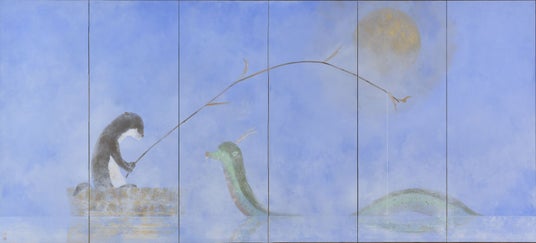 《印旛沼月下圖屏風》139.5x307.2cm(六曲一隻) 2024-2025年 紙本彩色
