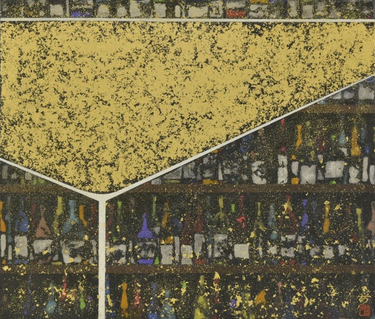 《金の酒》45.5×53.0cm/10号F 2025年 紙本彩色、金砂子
