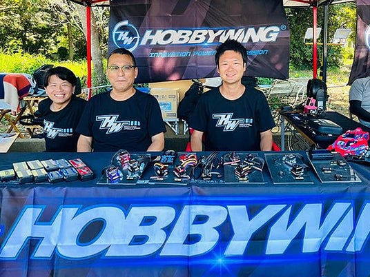 HOBBYWINGブースにて、澤田・秋元がお待ちしております。テクニカルなご相談から新商品の噂まで、ぜひぜひこの機会にお声掛けください。