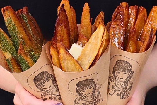 【日比焼き芋 -HIBIYAKIIMO TOKYO-】の“日比焼き芋のポテトフライ”焼き芋にしてからこんがり揚げているので、外はサクサク・中は柔らか、甘じょっぱい味がクセになる逸品。