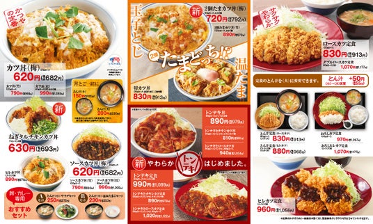 2025年10月10日(金)より、80gの豚ロースを2枚使用し、特製の醤油ダレとバターで仕上げた食べ応えのある「トンテキ丼」、たまごを2つ使用した「2個たまカツ丼」をはじめ、新グランドメニューが仲間入りいたします。商品概要