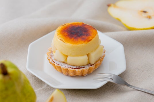 ラ・フランスを忍ばせ、果肉感とキャラメルの香ばしさ、ムースのなめらかさが一体とな