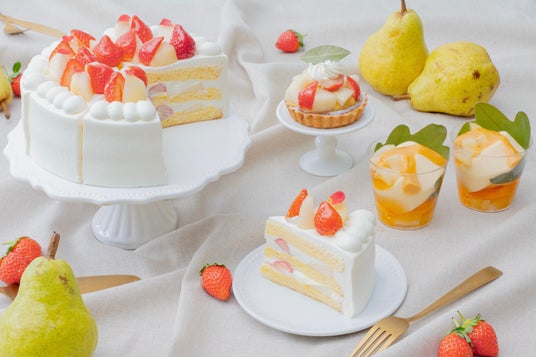 ケーキとしてもおすすめです。旬を迎えたラ・フランスの華やかな甘みと苺の程よい酸味が