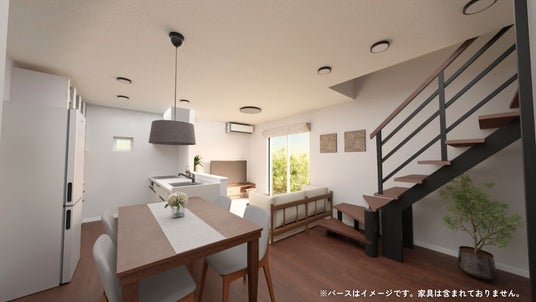 家具を設置したイメージ。限られた空間を無駄なくフルに使える間取りがユニテハウスの特長