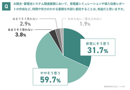 Q.太陽光・蓄電池システム関連業務において、発電量シミュレーションや導入効果レポートの作成など、時間や労力のかかる業務を外部に委託することは、有益だと思いますか。(n=104)