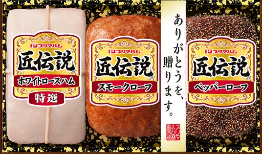 セット内容:特選ホワイトロ-スハム360g、スモークローフ140g、ペッパーローフ140g