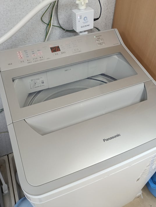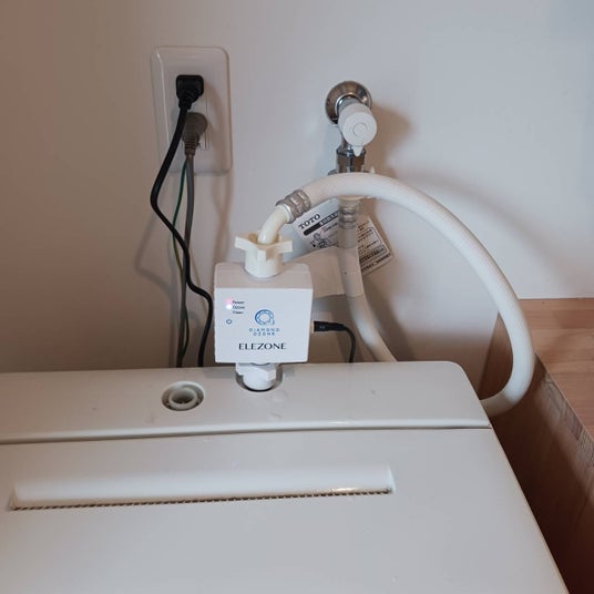 「New ELEZONE」は、ご家庭の洗濯機に簡単に取り付けられるオゾン水生成器です。水道水を電気分解することで、オゾン水を作り出し、いつものお洗濯をクリーニングのプロも行うオゾン水洗濯にします。