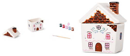 真っ白なおうちに、付属の絵の具を塗ってクリスマスハウスを完成させましょう。お菓子を入れたり、小物入れとして飾ったり、完成後の使い方は自由自在