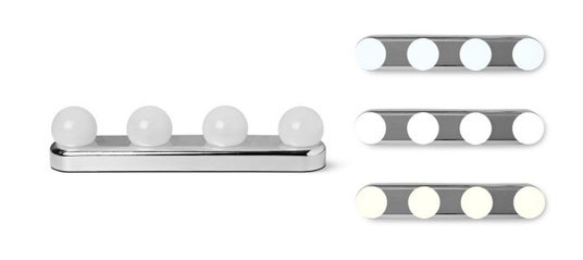 鏡に簡単に取り付けられるライト。明るい場所でメイクすると、完成度もアップ!明かりは3色のエフェクト付きです。