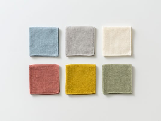 愛媛県今治市の地域産業との取り組み第2弾として、肌あたりの良い紋織ハンカチを6色で発売。2022年4月発売の今治産タオルと同様に、独自の品質基準を通過した今治の認証マーク付きです。