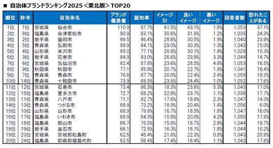 大東建託株式会社(本社:東京都港区、代表取締役 社長執行役員 CEO:竹内啓)は、18万人を超える回答を集めた大規模なブランド調査を行い、「いい部屋ネット 自治体ブランドランキング2025<東北版>」として集計しました。