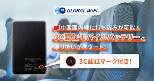 「人と人をつなぐ。」「世界をつなぐ。」のテーマのもと、グローバルWiFi事業、情報通信サービス事業、グランピング・ツーリズム事業を展開する株式会社ビジョン(本社:東京都新宿区 代表取締役社長COO:大田健司)が提供する海外用Wi-Fiレンタルサービス「グローバルWiFi(R)」において、中国「3C認証」を取得したモバイルバッテリーレンタルの取り扱いを開始しました。