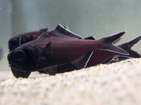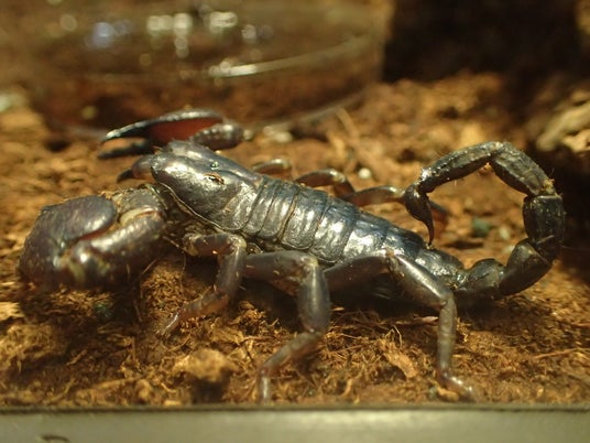 暗い空間の中、ブラックライトを使って蛍光発色する生きものであるダイオウサソリ、目の下に発光器を持つヒカリキンメダイを展示します。暗闇に現れるオバケのように怪しく光る生きものたちの様子をお楽しみいただけます。