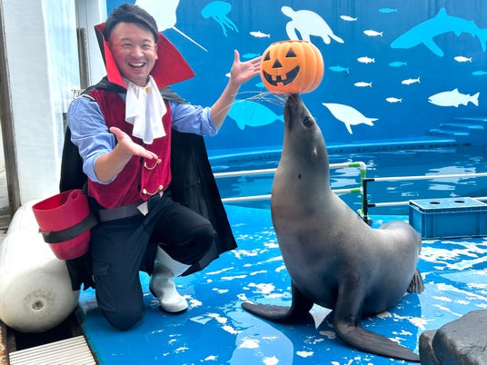 アシカがカボチャなどのハロウィンにちなんだ道具を使ってバランス感覚を披露したり、仮装をしたトレーナーとイルカがパフォーマンスするなど、ハロウィン気分を味わえるパフォーマンスです。