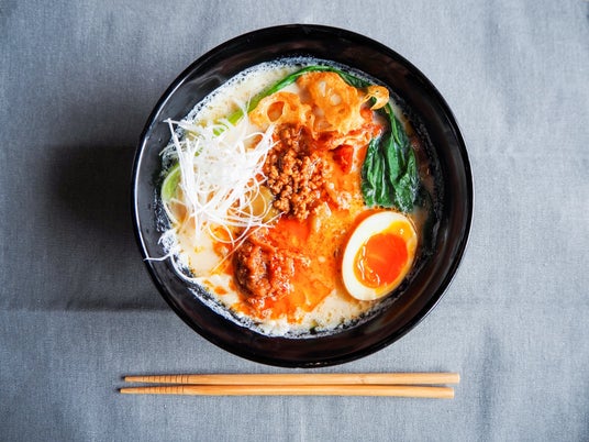 【潮来市・道の駅いたこ レストラン「おふくろ亭」】特製ラー油が決め手!豆乳担々フォー(1食) 637円/地階鈴廣前特設売場