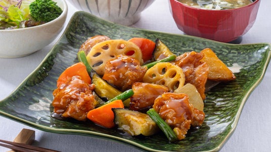 不動の人気No.1メニュー!玄米黒酢と黒糖に、りんご酢で味を調えた、大戸屋オリジナルの黒酢あん。