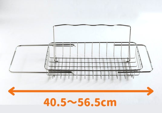 滴る水滴はシンクに直接落ちるため、水受けトレイのお手入れが不要です。側面アームはスライド式を採用し、奥行約38~53cmのシンクに対応。シンク上の空間を有効活用することで、調理台の作業スペースを広げられる省スペース設計です。