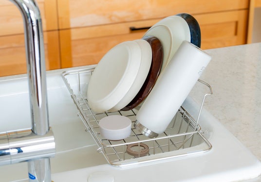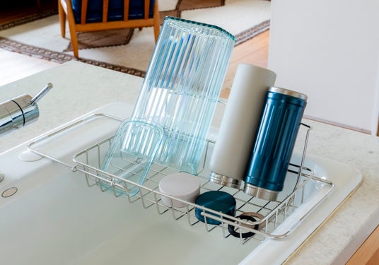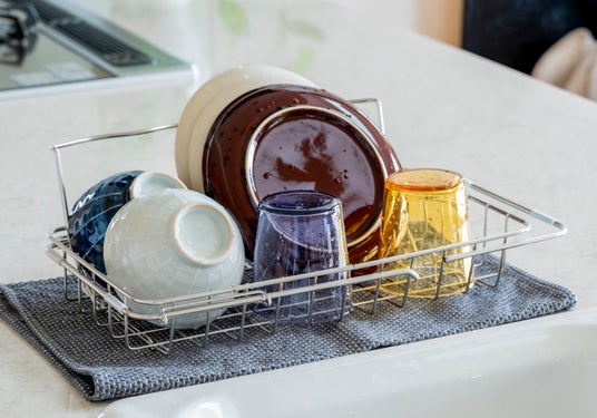 他の活用方法として、かご底には脚が付いており、シンク横にも設置可能。吸水タオルやマットを敷いて使えば、食器が直接触れず、衛生的に乾かせます。シンクの掃除時などにも移動したまま水切りできるため、置き方の自由度が高く、使い方に合わせて柔軟に対応できます。