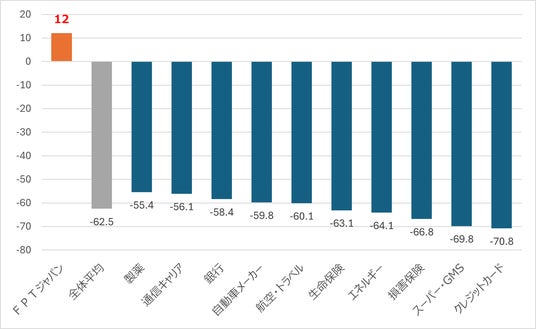 NTTコムの調査結果とFPT独自のeNPS調査結果をもとに加工して作成:従業員推奨度(eNPS)では+12%と、国内10業界平均(-62.5%)を大きく上回るFPTジャパン