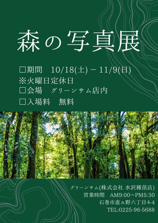 時間:9:00~15:00/会場:グリーンサム店内