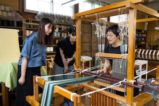 米沢の繊維産業は、江戸時代より継承する伝統的な和装の織物、近代以降に発展した洋装の生地製造・縫製、テキスタイル・ブランド、空間装飾、寝具類まで、多彩かつ特殊な生産加工技術を持つ事業者が集結していることが大きな特徴です。体験プログラムは各工房ごとにひらかれ、初開催となる藍染バンダナ制作、糸枠を使用したワークショップが行われたほか、前年からの人気プログラムとして、紅花染め体験、手機織り体験、動力織機によるティーマット制作、かまぐち制作などが行われました。多くの人が各工房のプログラムに参加し、米沢のものづくりに触れていただきました。