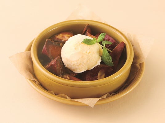 ほくほくの茨城県産さつまいもを使った大学芋に、バターとアーモンドの香ばしさをプラス。どこか懐かしい味わいの大学芋とバニラアイスが、絶妙なハーモニーを生み出します。