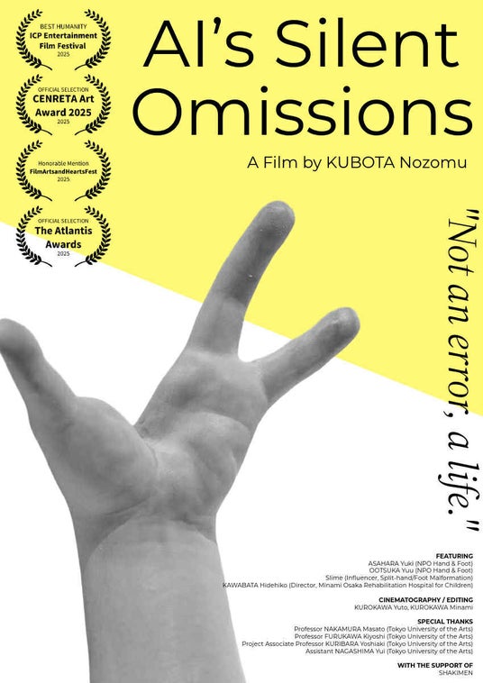 2025年10月8日、タイ・バンコクで開催されたCENRETA ART AWARD2025にて、窪田望が監督したドキュメンタリー作品『AIが消し去る声』が最優秀賞を受賞しました。『AIが消し去る声』は、AI社会の背後にある分類の暴力性や不可視化された存在を浮かび上がらせる作品です。本作品が評価されたことにより、この問いがより広範な国際的対話へと拡張していくことを期待しています。