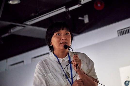 奄美大島の人たちは自然に合わせて暮らしているため、自然を感じ取る力が強いと話すミロコマチコ。