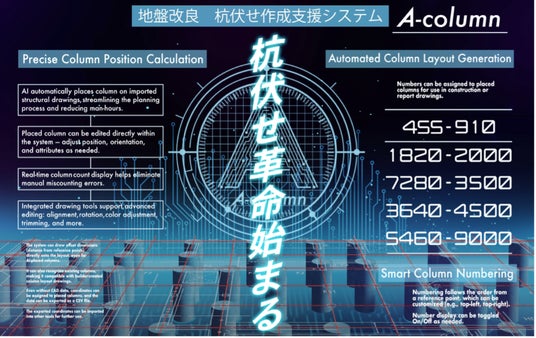 NSGグループの株式会社新潟人工知能研究所(新潟県新潟市、代表取締役 黒田達也)は、地盤調査・基礎地盤対策の専門集団であるオムニ技研株式会社(新潟県長岡市、代表取締役 久保田宏)と共同開発した地盤改良 杭伏せ作成支援AIシステム「A-column (エーコラム)」の販売を正式に開始いたしました。