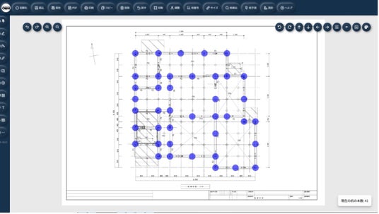 「A-column」には、オムニ技研と新潟人工知能研究所が共同で開発・特許登録した 独自技術(特許第7545679号「要素自動配置システム及び要素自動配置方法」) を搭載。設計図面に含まれる柱芯・フーチング情報をAIが自動解析し、最適な杭配置図を瞬時に生成することを可能にしました。
