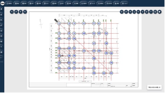 杭伏図から各杭の座標・斜距離を計算し、測量に必要な情報を即座に図面化し、杭ナンバリング・間隔チェック機能で施工ミスを大幅に低減します。