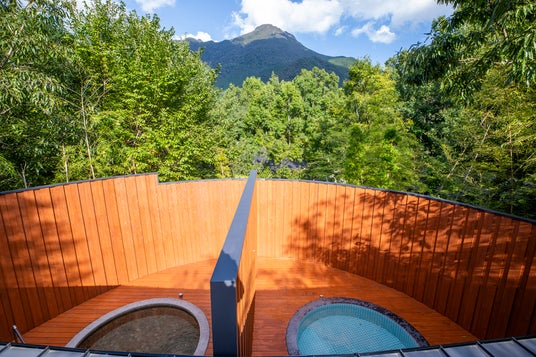 ・ 全客室に天然温泉を完備、ヴィラスイートでは最大160平方メートル のプライベートドッグランを併設。