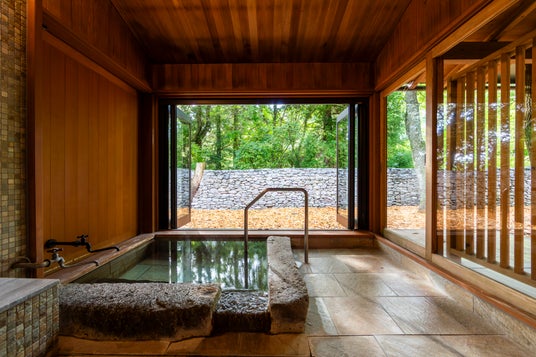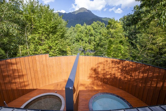 全ての客室に専用露天風呂を併設しているほか、由布岳を臨む露天風呂やお部屋とは異なる雰囲気の貸し切り温泉も楽しむことができます。地下から湧き出る温泉は美肌保湿成分をたっぷり含んだ柔らかな肌触りで、くつろぎと優しさが体の中まで染みわたっていくような心地よさを感じさせてくれます。