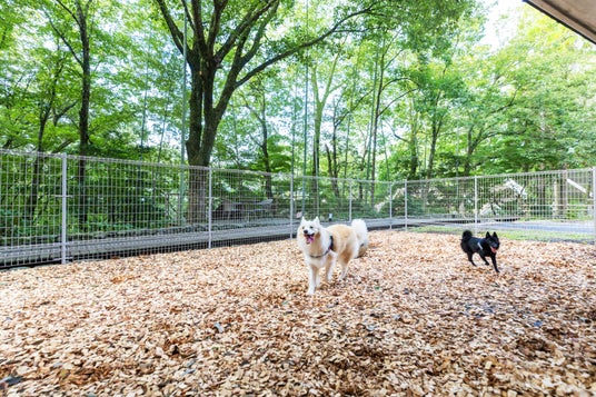 ドッグラン 心地よい空気の中でのびのび遊べるくぬぎと竹林に囲まれた木陰のドッグランをご用意しています。全犬種用エリア(約80平方メートル )と小型犬優先エリア(約50平方メートル )の2つのエリアを用意しており、全ての愛犬が安心して過ごすことができます。