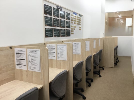 静かで学習に集中できるブースタイプの自習室。塾の授業がない日も学校の宿題などで利用いただけます。