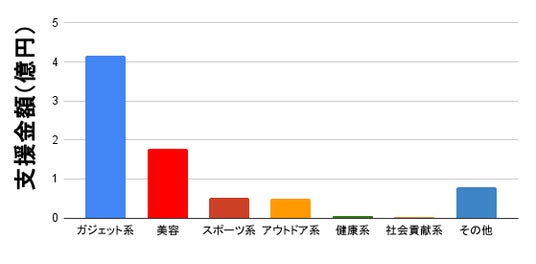 - 平均支援総額が高いジャンル:ガジェット系、美容・ファッション系