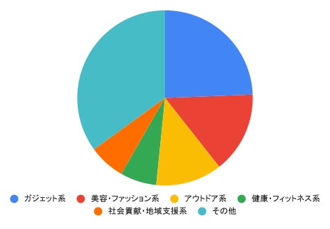 ガジェット系は全体の約33.9%(20件)を占め、これに美容・ファッション系(17件、28.8%) が続きます。