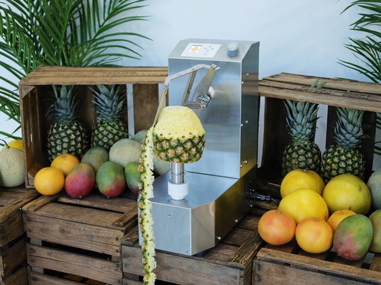 KA-750PM「大助」大型果実(パイナップル、メロン、マンゴー、カボチャ、グレープフルーツ等)専用。毎時約250個の処理が可能(原料形状・条件により異なります)
