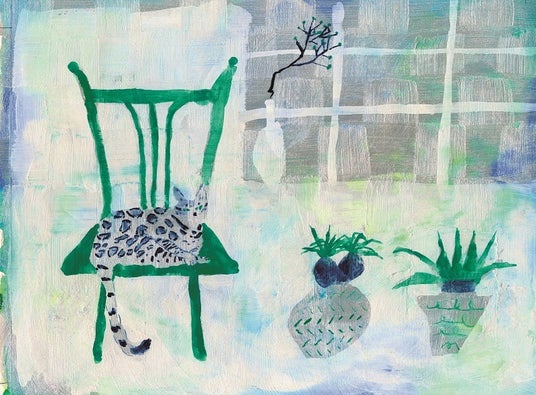 ベンガル猫との暮らしに思いを馳せて描きました。