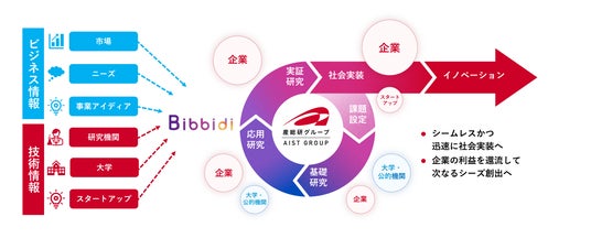本取り組みは、新たに開発された生成AI「Bibbidi」の提供と産総研グループのコーディネートに関するノウハウを組み合わせた、前例のない産学連携でのオープンイノベーション支援サービスです。