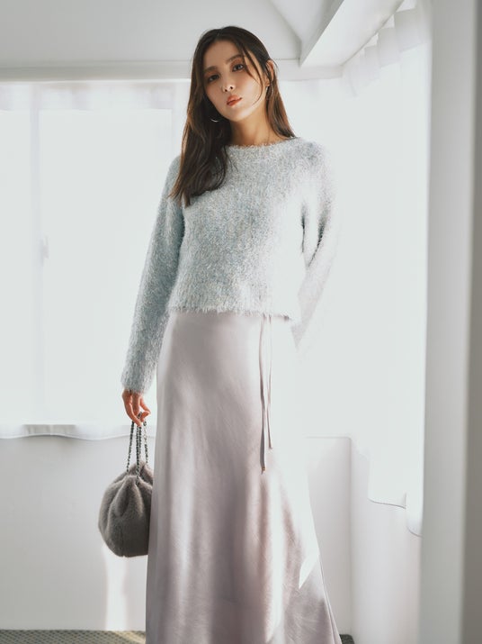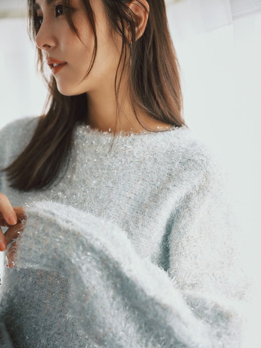 華やかさと品の良さが好バランスなラメとフェザーの煌めきヒロインニット