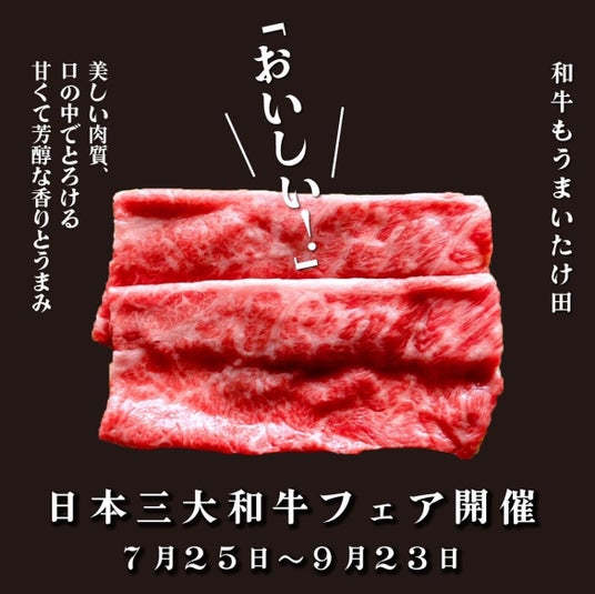 『日本三大和牛フェア』~たけ田で近江牛を食べて、神戸牛・松阪牛を当てよう!~