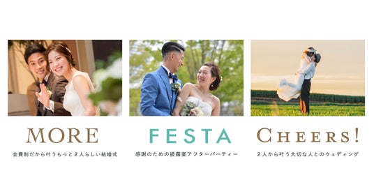 主なサービスブランド:MORE(会費制結婚式)、CHEERS!(少人数結婚式)、FESTA(披露宴アフターパーティー)