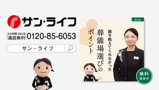 一度聴けば耳に残る「サン・ライフのお葬式」サウンドロゴにも注目です。