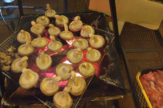 ▲炭火でジューシーに焼き上げたのとっこのしいたけ